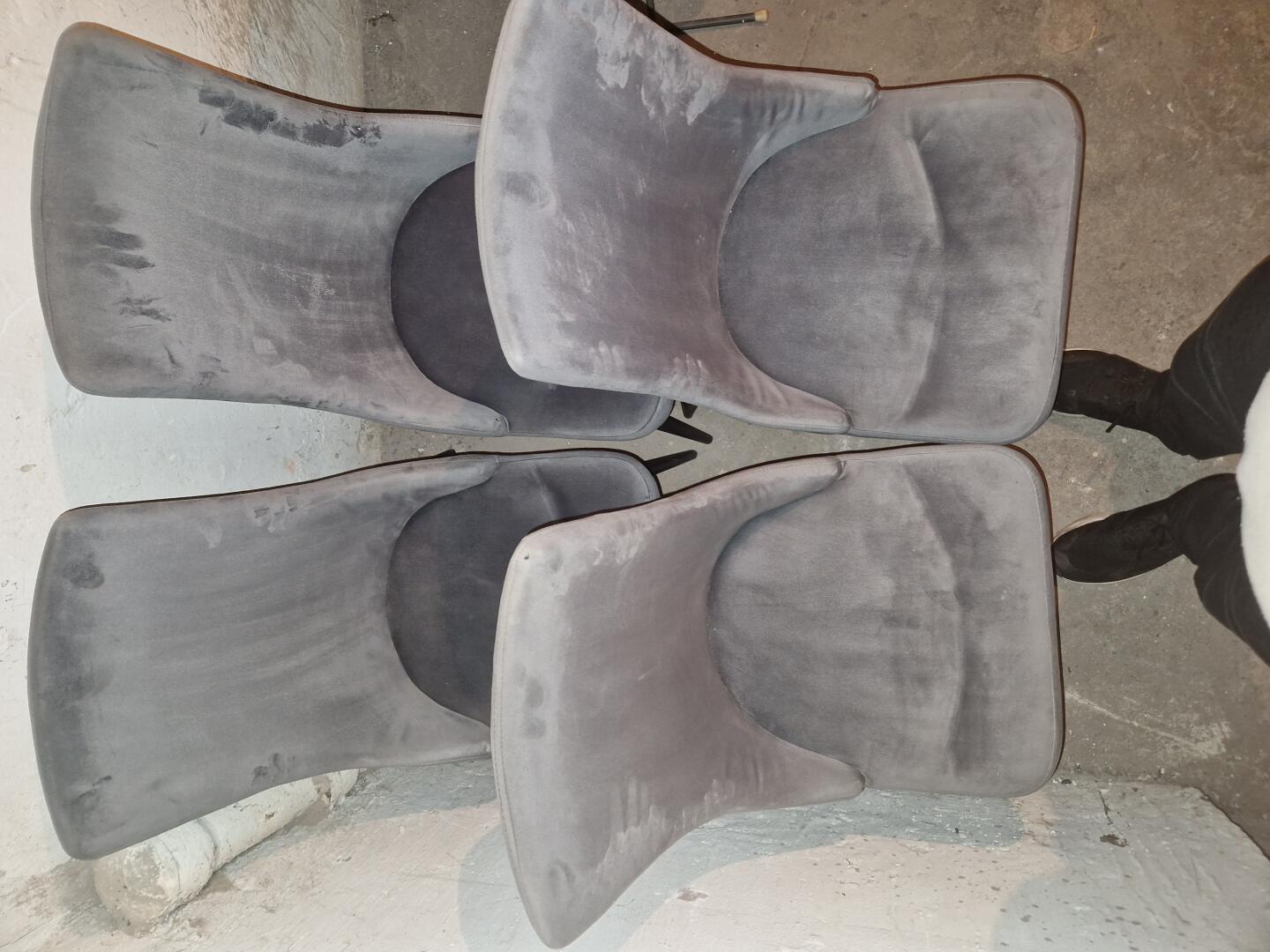 Zestaw 4 krzesel material welur kolor szary krzesla w bardzo dobrym stanie + wyprane cena 270 za komplet .