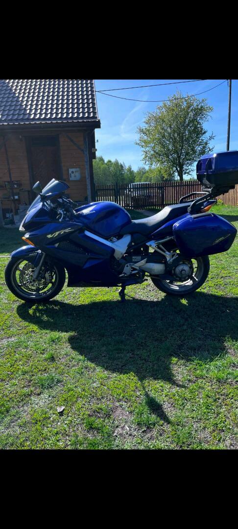 Sprzedam turystyczny motocykl Honda VFR800 vtec rok produkcji 2004 silinik moc 109km przebieg około 60000km. Stan bardzo dobry, 3 kufry, podgrzewane manetki. aktualny przegląg i ubezpieczenie. Bardzo fajnie się jeździ. Bardzo wygodny i szybki motocykl.