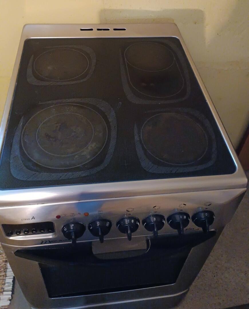 Sprzedam kuchenkę elektryczną czteropalnikową w kolorze inox/srebrnym. Urządzenie w pełni sprawne ? wszystkie pola grzewcze działają prawidłowo, piekarnik również działa bez zarzutu. Wymiary: 50 cm x 60 cm. Wyposażenie: 4 pola grzewcze (płyta elektryczna), sprawny piekarnik z szybą, pokrętła do regulacji temperatury. Stan widoczny na zdjęciach. Zasilanie: standardowe (kuchenka działa na prąd). U mnie była podłączona pod tzw. ?siłę?, czyli instalację trójfazową.