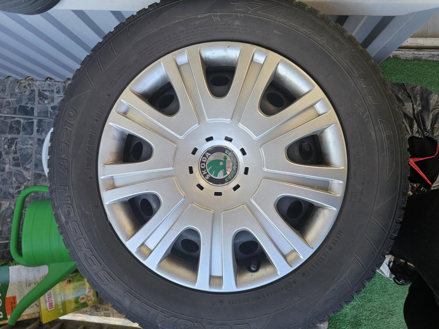 Sprzedam 4 opony z felgami i kołpakami oryginalnymi do skody opony stan dobry